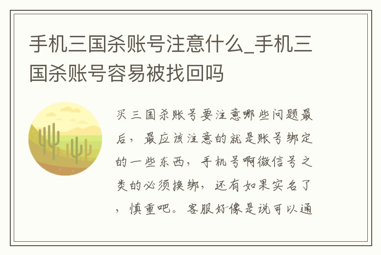 手機三國殺賬號注意什么_手機三國殺賬號容易被找回嗎