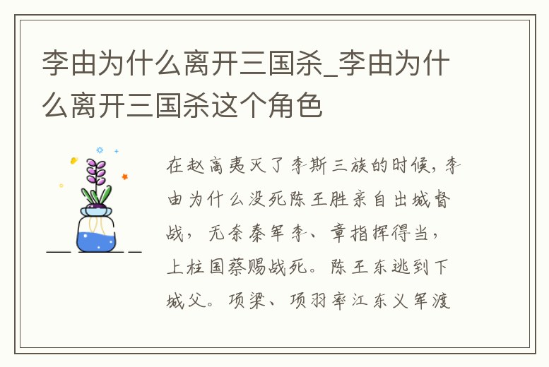 李由為什么離開三國殺_李由為什么離開三國殺這個角色
