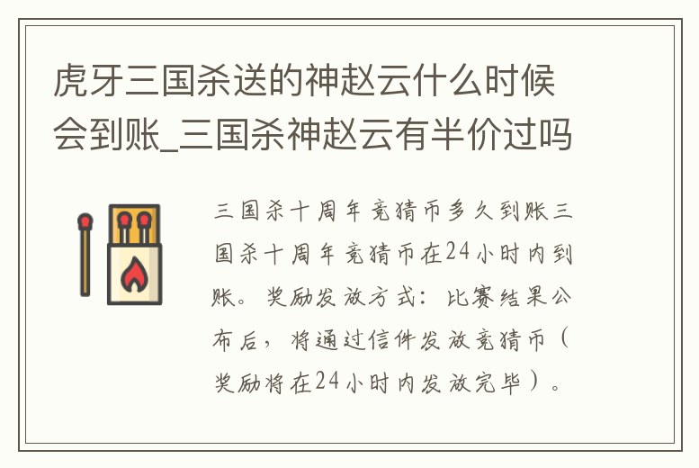 虎牙三國殺送的神趙云什么時候會到賬_三國殺神趙云有半價過嗎