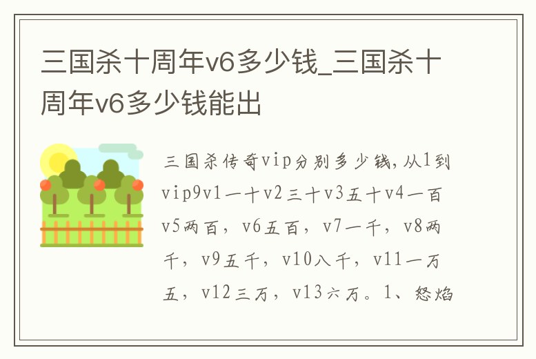 三國殺十周年v6多少錢_三國殺十周年v6多少錢能出
