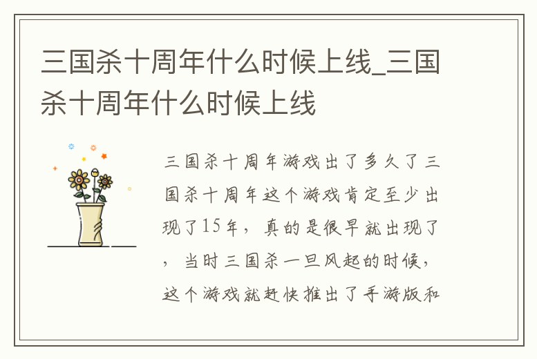 三國(guó)殺十周年什么時(shí)候上線_三國(guó)殺十周年什么時(shí)候上線