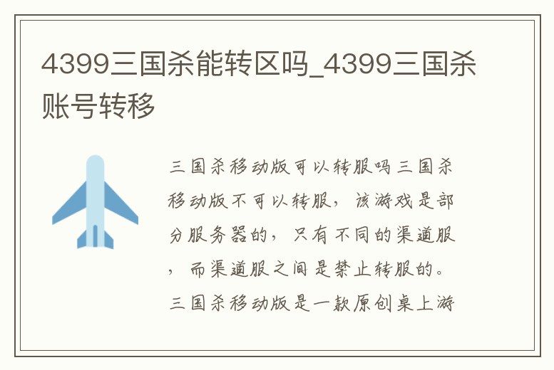 - 4399三國(guó)殺能轉(zhuǎn)區(qū)嗎_4399三國(guó)殺賬號(hào)轉(zhuǎn)移