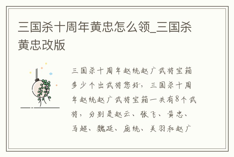 三國殺十周年黃忠怎么領_三國殺黃忠改版