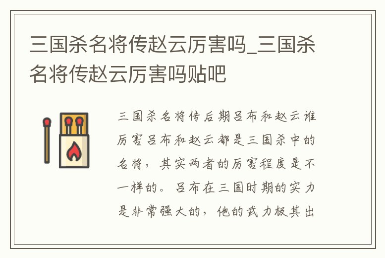 三國殺名將傳趙云厲害嗎_三國殺名將傳趙云厲害嗎貼吧