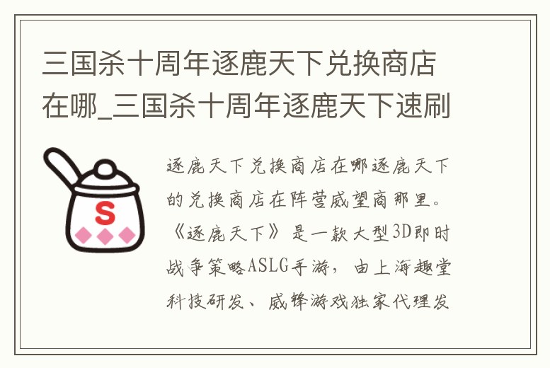 三國殺十周年逐鹿天下兌換商店在哪_三國殺十周年逐鹿天下速刷陣容