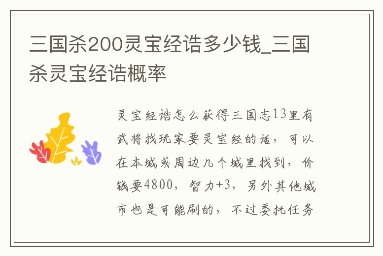 - 三國(guó)殺200靈寶經(jīng)誥多少錢(qián)_三國(guó)殺靈寶經(jīng)誥概率