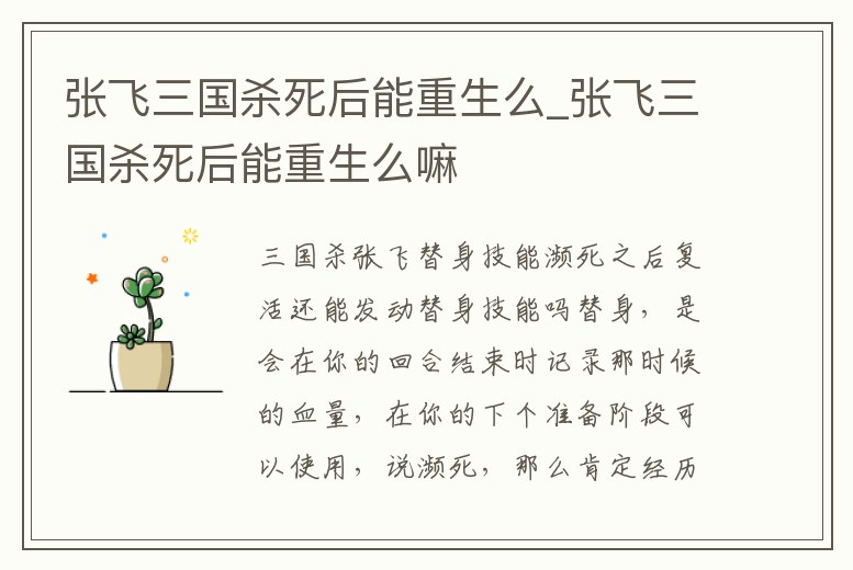 - 張飛三國(guó)殺死后能重生么_張飛三國(guó)殺死后能重生么嘛