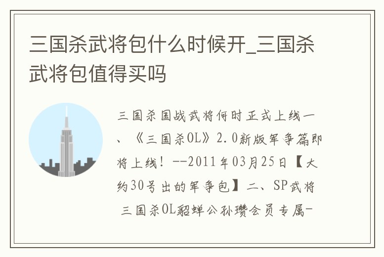 三國殺武將包什么時候開_三國殺武將包值得買嗎