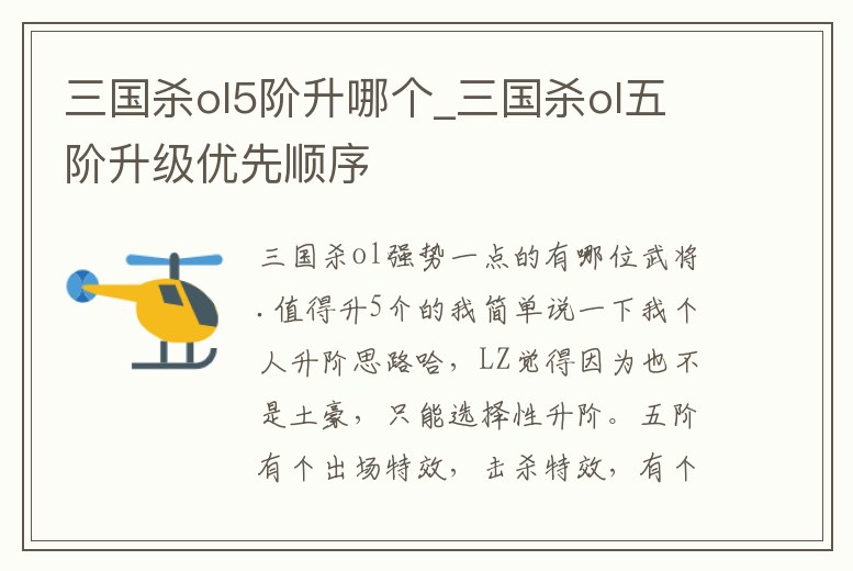 三國殺ol5階升哪個_三國殺ol五階升級優先順序