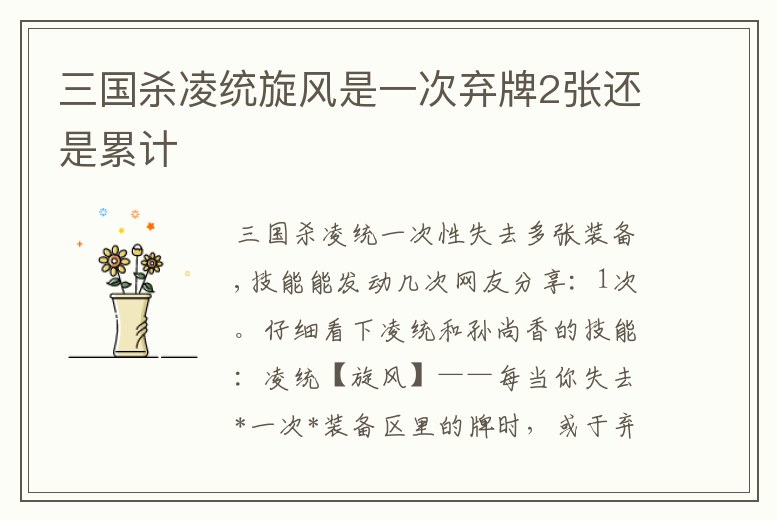 三國殺凌統旋風是一次棄牌2張還是累計