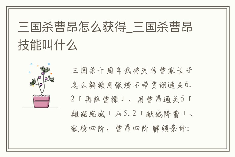 三國殺曹昂怎么獲得_三國殺曹昂技能叫什么
