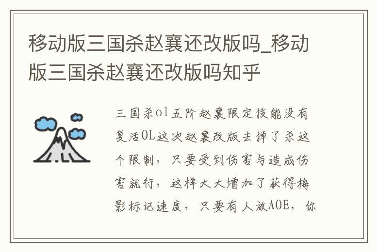 移動版三國殺趙襄還改版嗎_移動版三國殺趙襄還改版嗎知乎