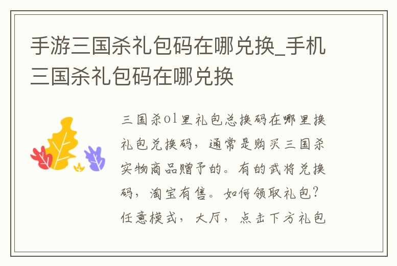 手游三國殺禮包碼在哪兌換_手機三國殺禮包碼在哪兌換