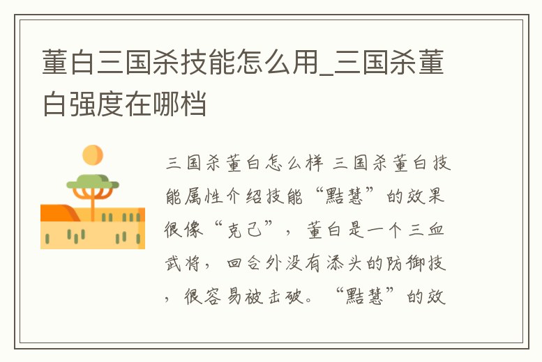 董白三國殺技能怎么用_三國殺董白強度在哪檔