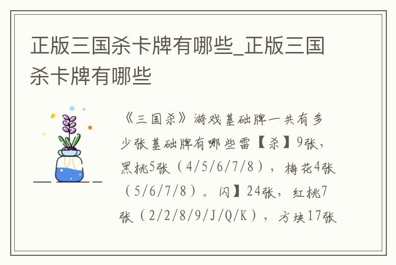 8、三國殺標準版總共多少張牌?各有哪些牌?都是哪些花色