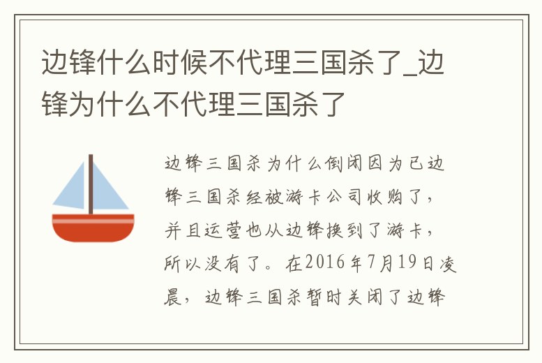 邊鋒什么時候不代理三國殺了_邊鋒為什么不代理三國殺了