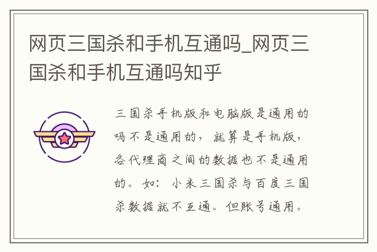 網頁三國殺和手機互通嗎_網頁三國殺和手機互通嗎知乎