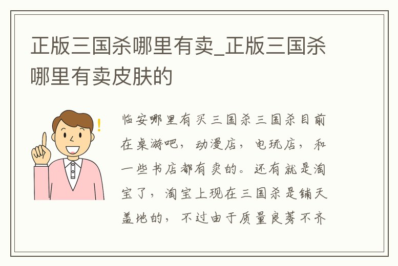 - 正版三國殺哪里有賣_正版三國殺哪里有賣皮膚的