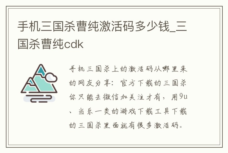 手機三國殺曹純激活碼多少錢_三國殺曹純cdk