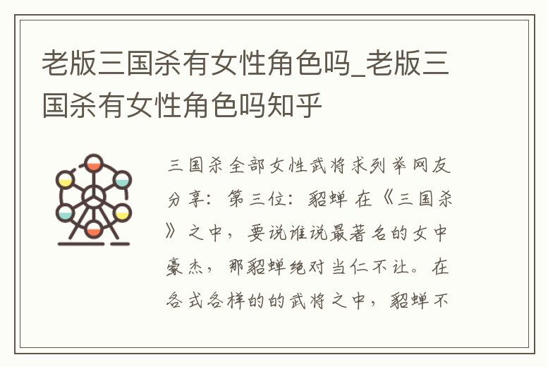 老版三國殺有女性角色嗎_老版三國殺有女性角色嗎知乎