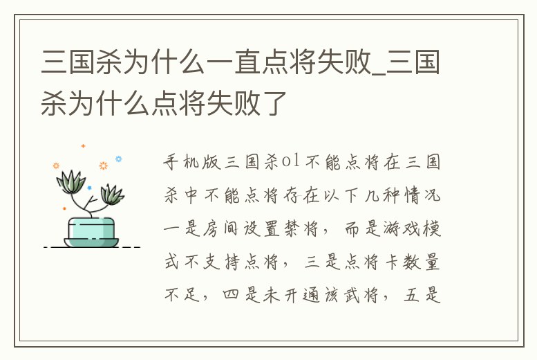 三國殺為什么一直點將失敗_三國殺為什么點將失敗了