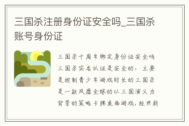 三國殺注冊身份證安全嗎_三國殺賬號身份證