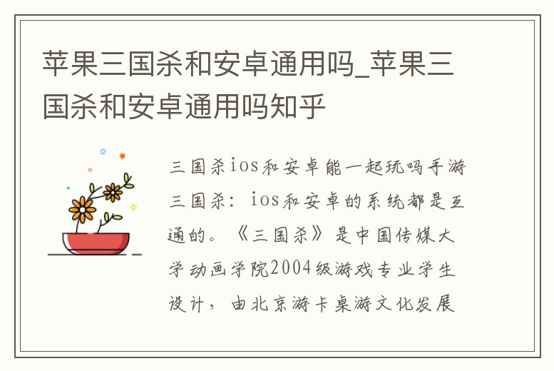 蘋果三國殺和安卓通用嗎_蘋果三國殺和安卓通用嗎知乎