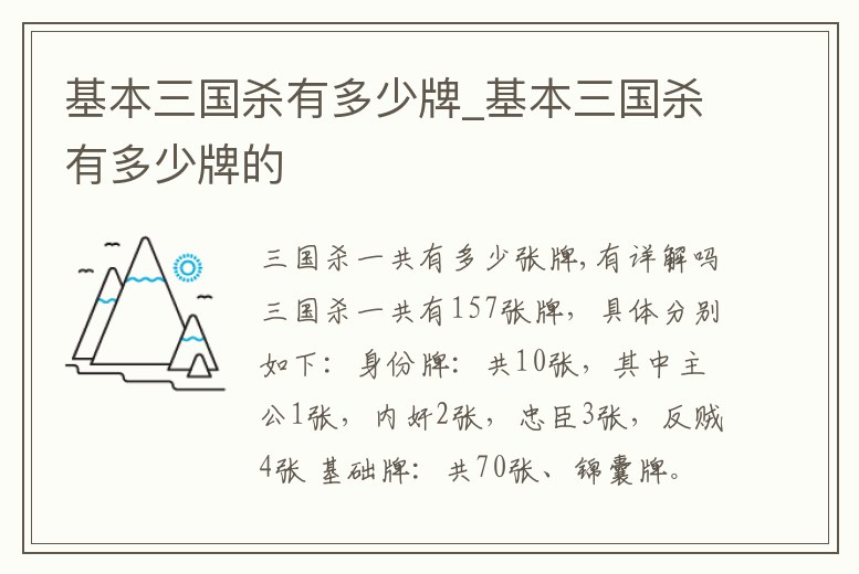 基本三國殺有多少牌_基本三國殺有多少牌的