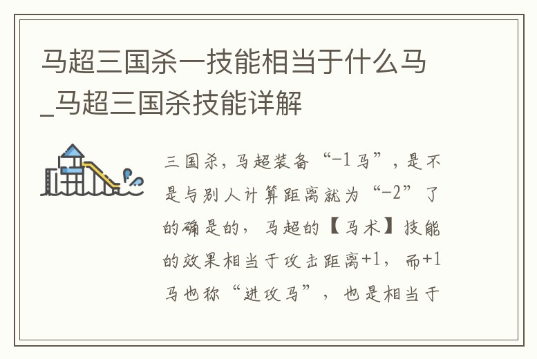 的確是的,馬超的【馬術】技能的效果相當于攻擊距離+1,而+1馬也稱“進攻馬”,也是相當于攻擊距離再+1。1+1=2,也就相當于攻擊距離+2/在與別人計算距離時-2了。