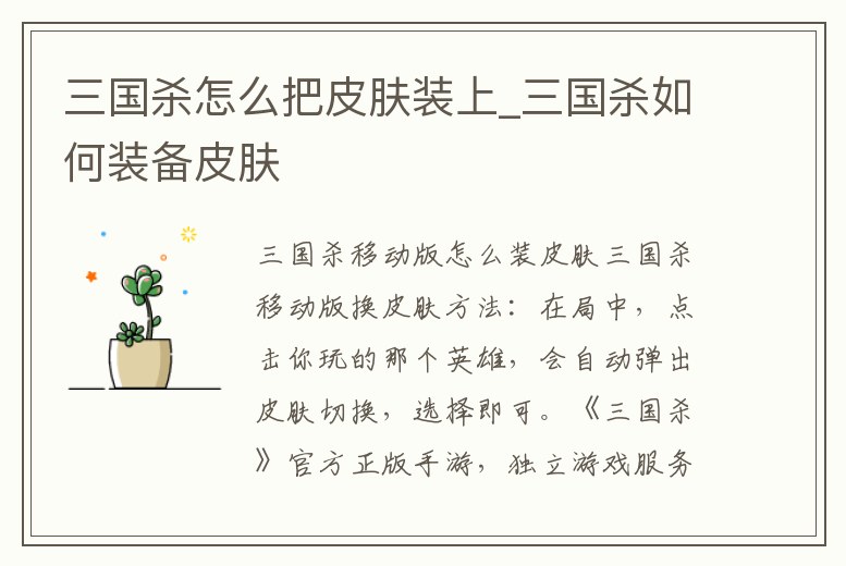 三國殺怎么把皮膚裝上_三國殺如何裝備皮膚