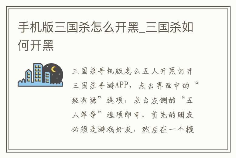 手機(jī)版三國(guó)殺怎么開(kāi)黑_三國(guó)殺如何開(kāi)黑