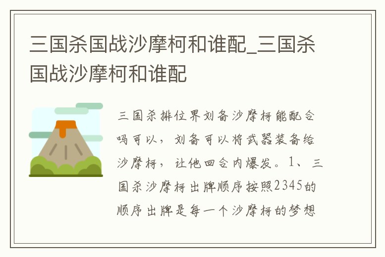 - 三國(guó)殺國(guó)戰(zhàn)沙摩柯和誰配_三國(guó)殺國(guó)戰(zhàn)沙摩柯和誰配