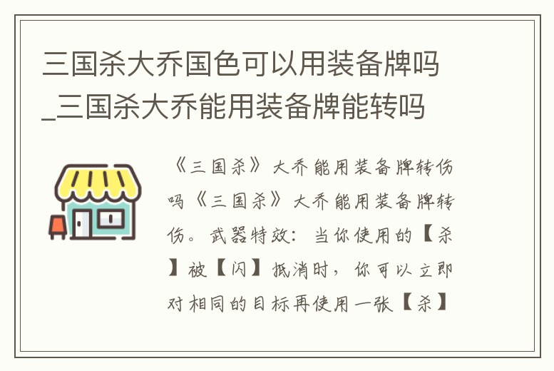 1、三國殺,大喬能用裝備牌轉(zhuǎn)傷嗎
