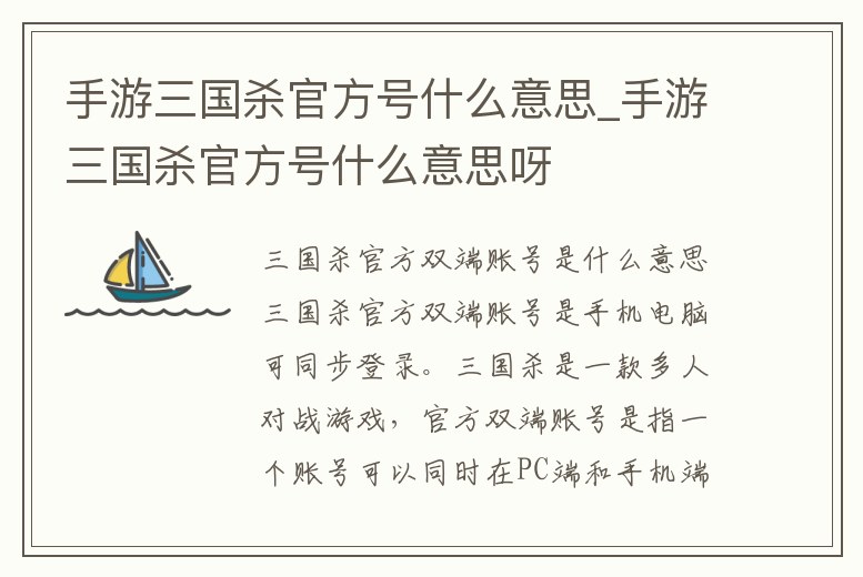 手游三國殺官方號什么意思_手游三國殺官方號什么意思呀