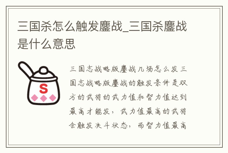 三國殺怎么觸發(fā)鏖戰(zhàn)_三國殺鏖戰(zhàn)是什么意思
