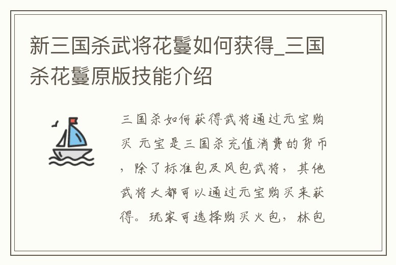 新三國殺武將花鬘如何獲得_三國殺花鬘原版技能介紹