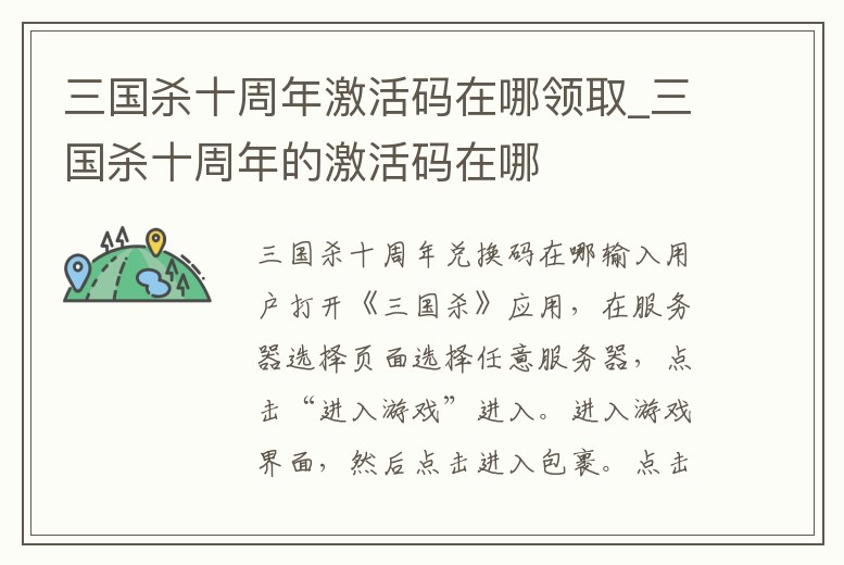 三國殺十周年激活碼在哪領取_三國殺十周年的激活碼在哪