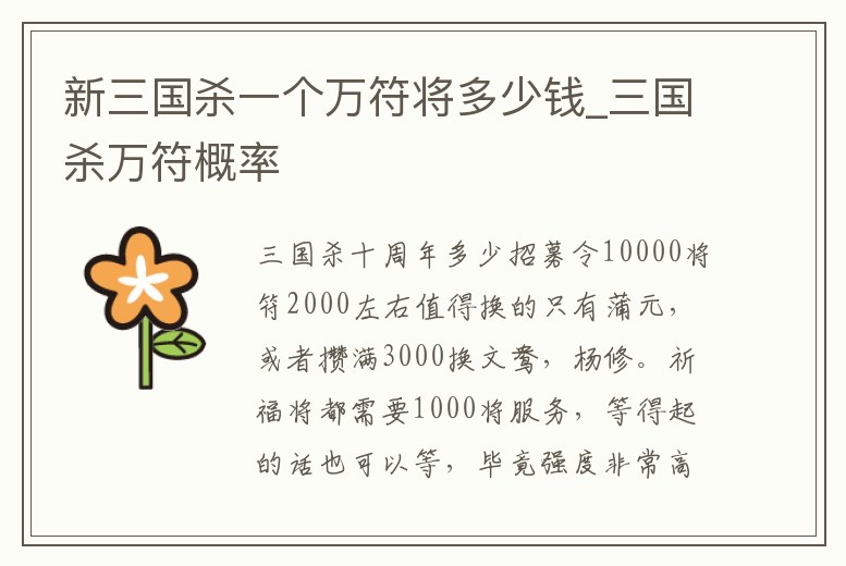 - 新三國殺一個(gè)萬符將多少錢_三國殺萬符概率