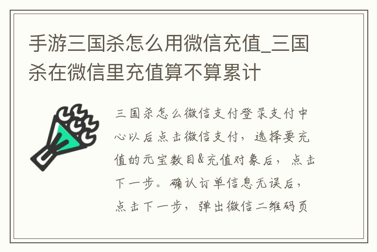 - 手游三國殺怎么用微信充值_三國殺在微信里充值算不算累計(jì)