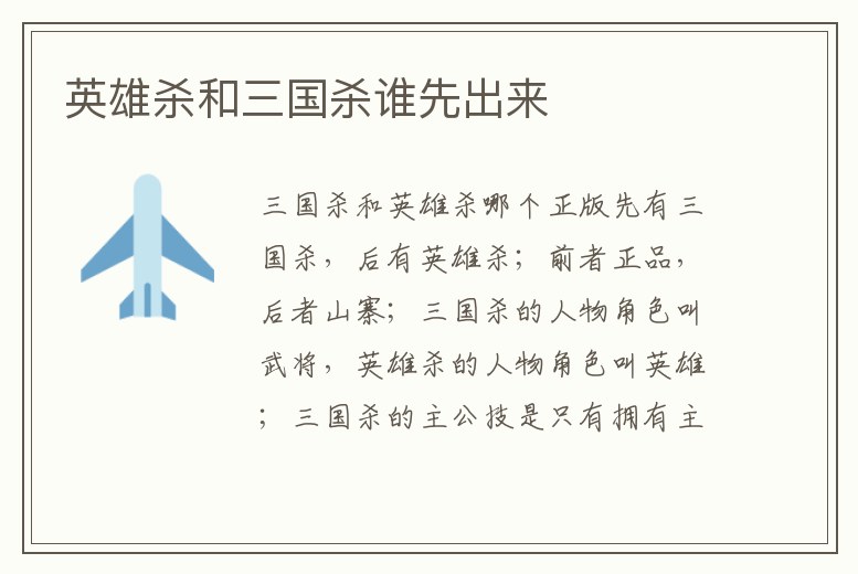 - 英雄殺和三國(guó)殺誰(shuí)先出來(lái)