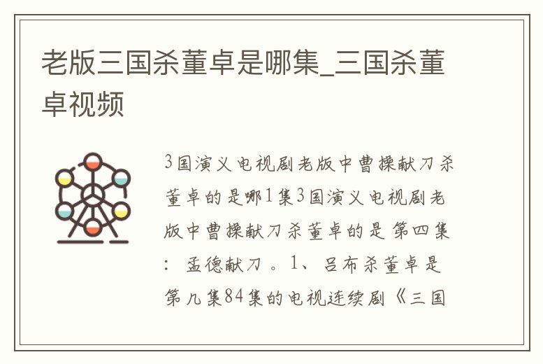老版三國殺董卓是哪集_三國殺董卓視頻