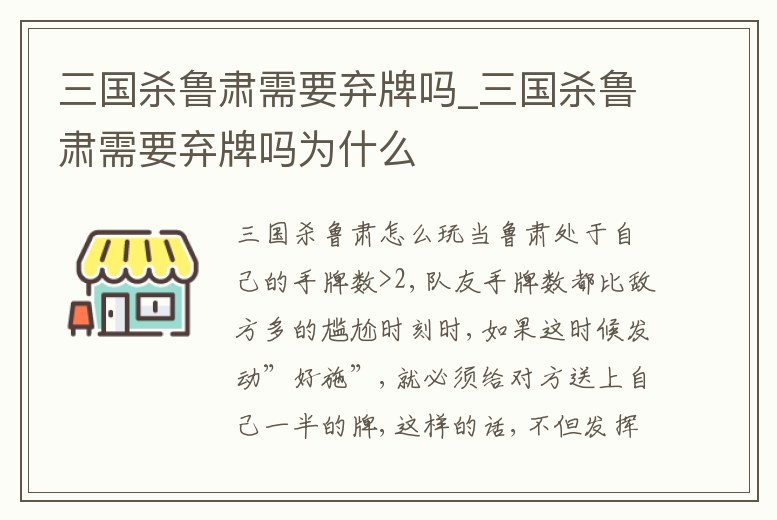 三國殺魯肅需要棄牌嗎_三國殺魯肅需要棄牌嗎為什么