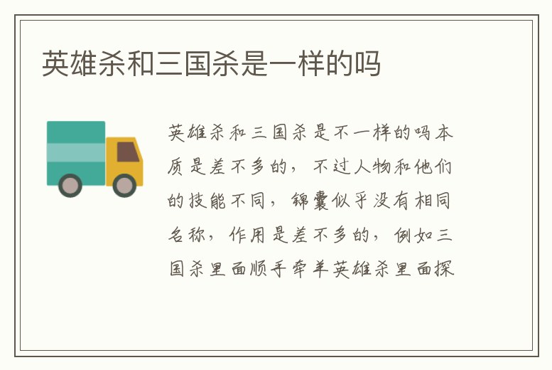 先有三國殺,后有英雄殺;前者正品,后者山寨;三國殺的人物角色叫武將,英雄殺的人物角色叫英雄;三國殺的主公技是只有擁有主公技的武將才能發(fā)動,英雄殺的主公技是當(dāng)了主公就擁有;三國殺的勢力為:魏蜀吳群,英雄殺的。