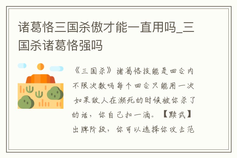 諸葛恪三國殺傲才能一直用嗎_三國殺諸葛恪強嗎
