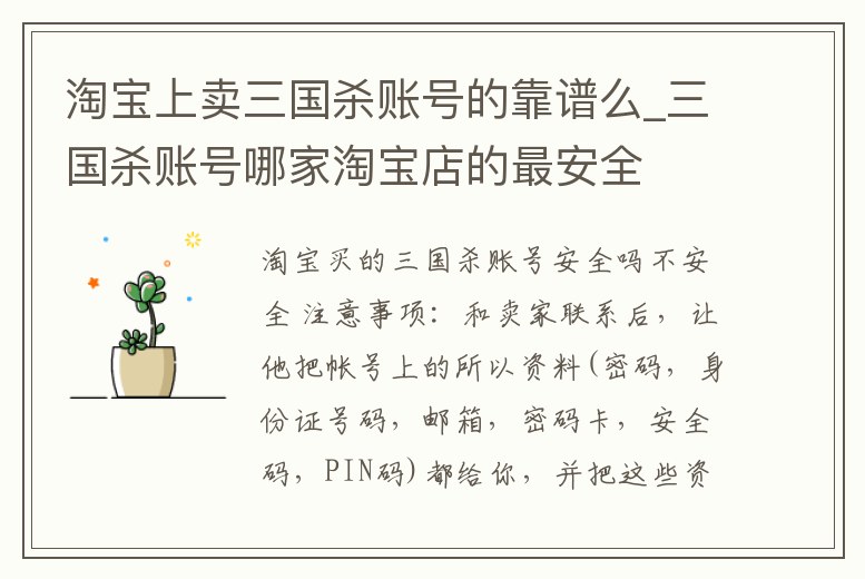 淘寶上賣三國殺賬號的靠譜么_三國殺賬號哪家淘寶店的最安全