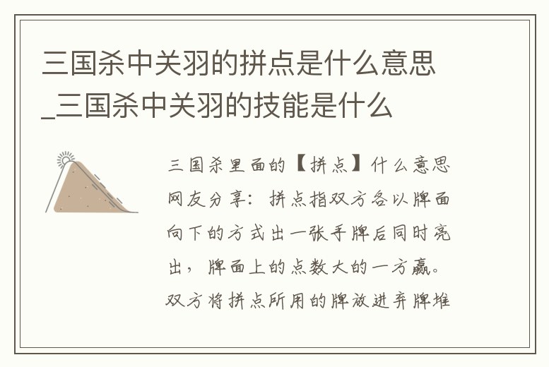 三國殺中關羽的拼點是什么意思_三國殺中關羽的技能是什么