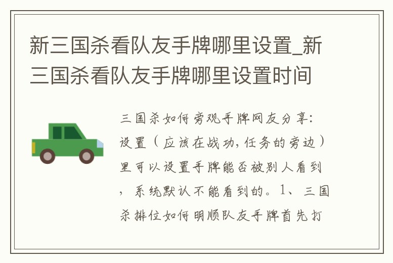 新三國殺看隊友手牌哪里設(shè)置_新三國殺看隊友手牌哪里設(shè)置時間