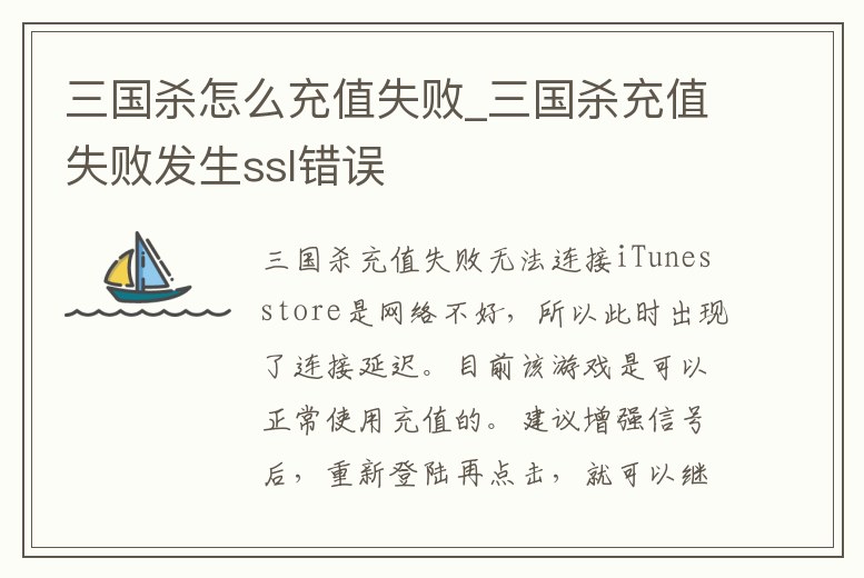 三國殺怎么充值失敗_三國殺充值失敗發生ssl錯誤