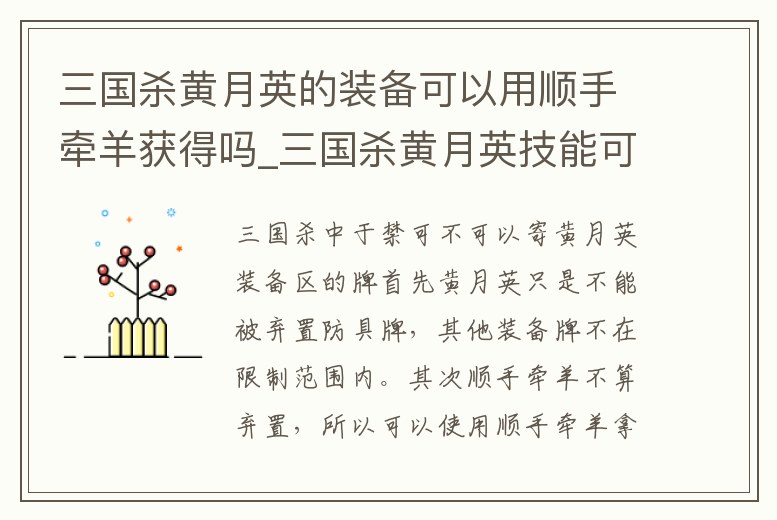 三國殺黃月英的裝備可以用順手牽羊獲得嗎_三國殺黃月英技能可以用幾次
