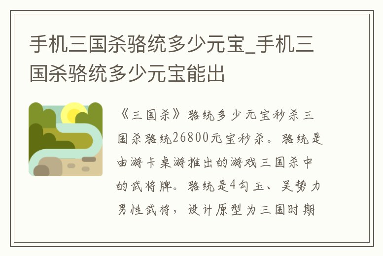 手機三國殺駱統多少元寶_手機三國殺駱統多少元寶能出